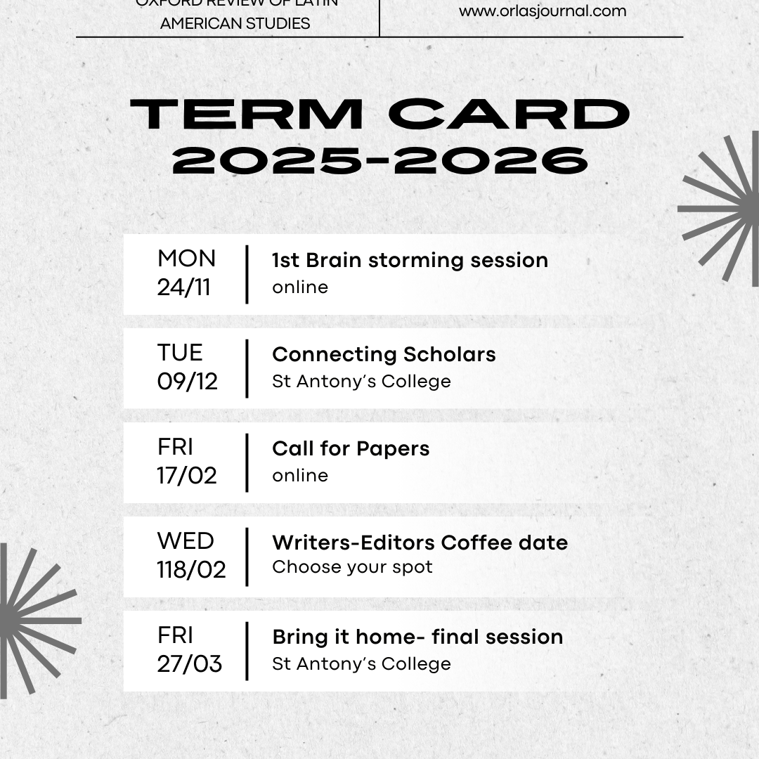 The Oxford Review of Latin American Studies is a student-led and peer-reviewed journal focused on fostering meaningful discussions about Latin America. Our commitment lies in unlocking insights and perspectives that magnify the region's significance on the global stage.